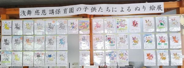 令和6年3月30日(土)~4月21日(日)まで、浅舞感恩講保育園の子供たちによる猫のぬり絵展が開催されます。
