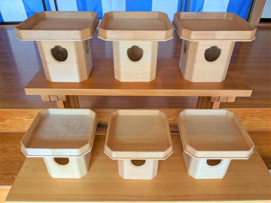 三方は神饌(しんせんー神様の召し上がりもの)を載せる台であり、お祭りの必需品です。
